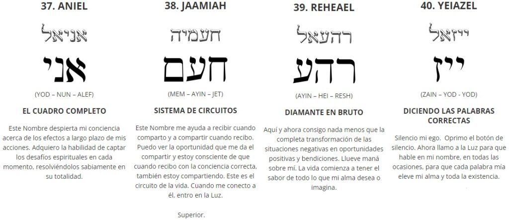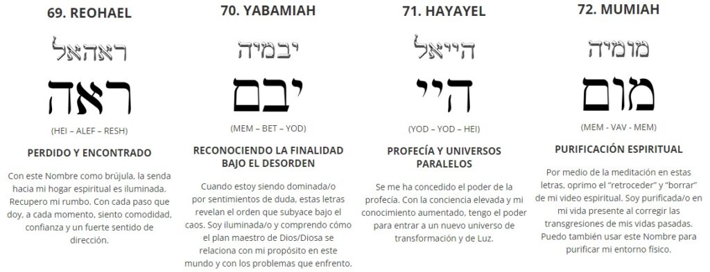 los 72 nombres de Dios que fue entregado al pueblo hebreo para entrar en estados de conciencia elevados donde incluso podemos recobrar la salud, por muy dañada que se encuentre.