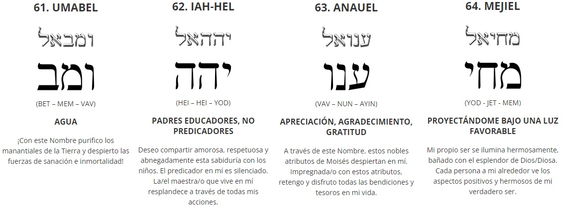 los 72 nombres de Dios que fue entregado al pueblo hebreo para entrar en estados de conciencia elevados donde incluso podemos recobrar la salud, por muy dañada que se encuentre.