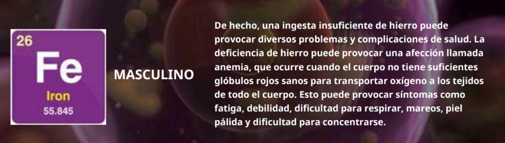 El HIERRO es crucial para nuestra respiración y función corporal general, y esencialmente sirve como la esencia de la vida misma. Sin hierro, la producción de glóbulos rojos, encargados de transportar el oxígeno por todo nuestro organismo, sería imposible. El oxígeno es esencial para cada proceso celular, proporcionando la energía necesaria para diversas funciones corporales. Además, la sangre juega un papel vital en la eliminación de los desechos metabólicos generados a través de la respiración al transportar dióxido de carbono, un subproducto del metabolismo, a los pulmones para su expulsión del cuerpo. De ahí que el suministro de oxígeno a las células y la eliminación del dióxido de carbono sean primordiales.