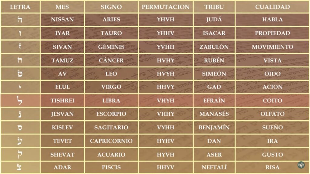 Tabla de permutación y cualidades. según las letra hebrea