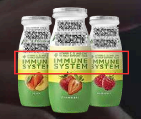Este producto presenta de manera destacada la frase «sistema inmunológico» en negrita para crear la impresión de que es beneficioso para la salud. Además, el envase utiliza el color verde, a menudo asociado con la naturaleza, la salud, la curación y el bienestar. Además, se muestra una